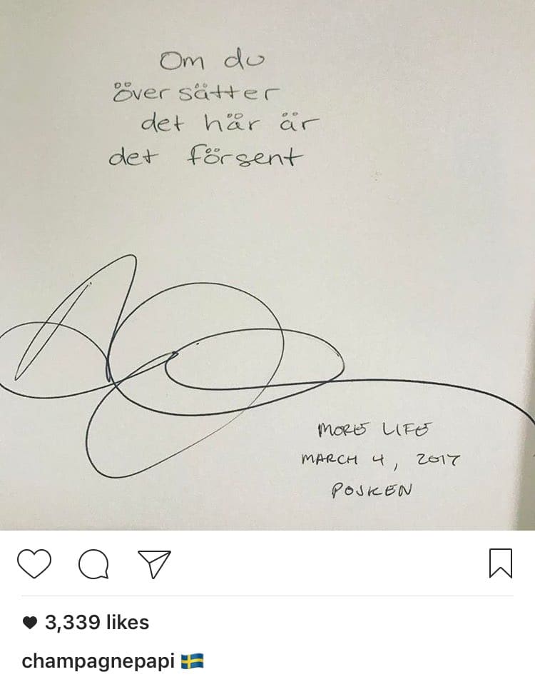 To add to the cloud of mystery, Drake wrote the letter in Sweedish. The message, “Om du över sätter det här är det försent,” translates to “If you’re reading/translating this, it’s too late.” The note is obviously a reference to his 2015 surprise project If You’re Reading This It’s Too Late.