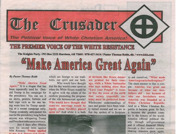 The Ku Klux Klan, a domestic terrorist organization, has found their man. The KKK has formally endorsed Donald Trump for President of the United States in their newspaper, The Crusader.