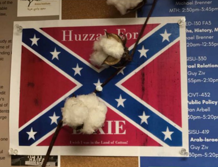 The latest racist-fueled actions came on the campus of American University where someone or some people hung posters of the confederate flag with cotton attached to them.