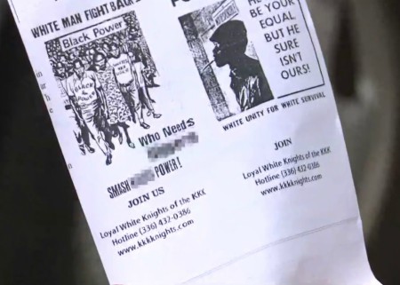A series of KKK recruitment fliers in Jacksonville, Florida threaten violence against "Black apes caught making eyes at white women."